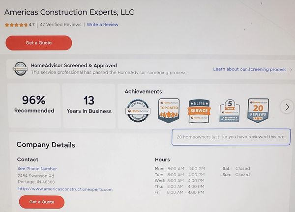 In 2021, as we transitioned into the winter of 2022, I modified the business address of America's Construction Experts from 7635 Indian Boundary to 2484 Swanson. In January 2022, clients alerted me to the fact that they were unable to locate us on Google, resulting in the removal of our business listing, which included over 200 5-Star Reviews. This situation persisted from January 2022, to December 2024, leaving our clients without a voice. Just based on volume I lost over 450 5-Star Verified Reviews.
